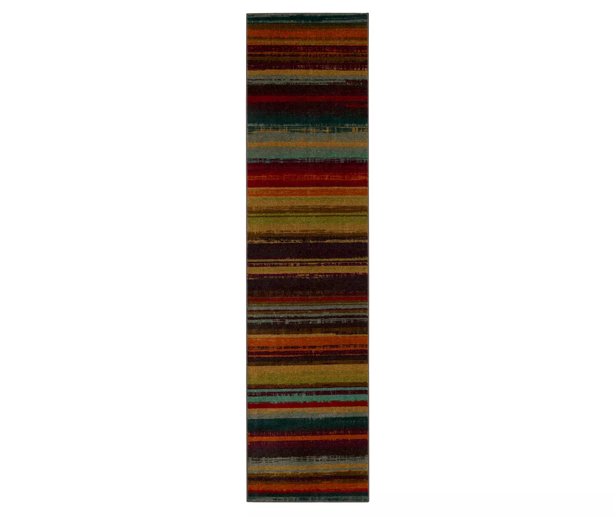 Enjoy a twist on classic stripes thanks to a rainbow of high-contrast colors. Combining a unique pattern and soft comfort underfoot, this rug offers a perfect finishing touch in any living or work space.