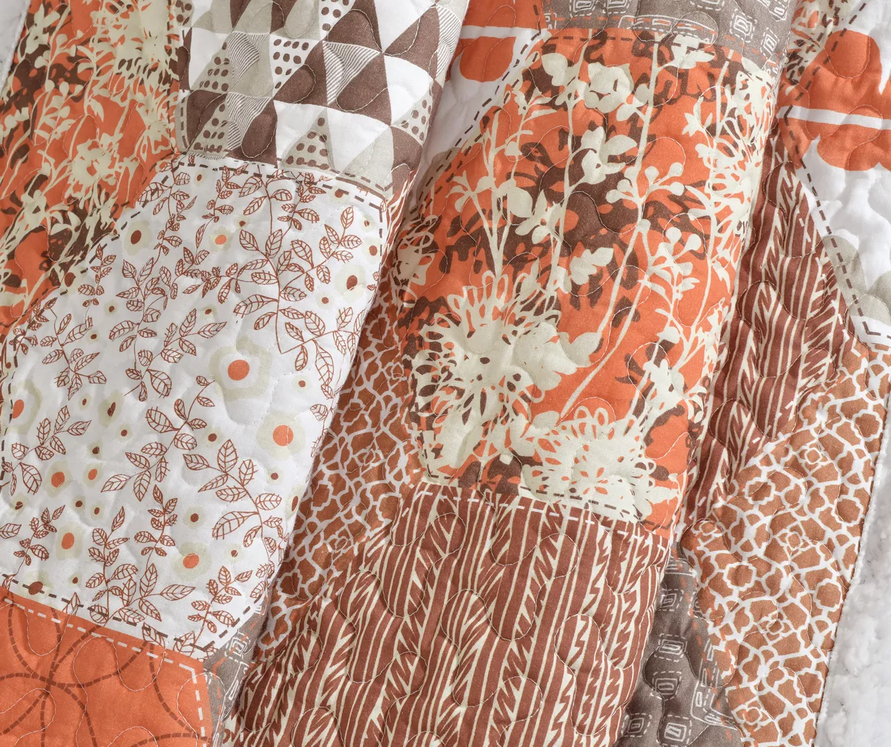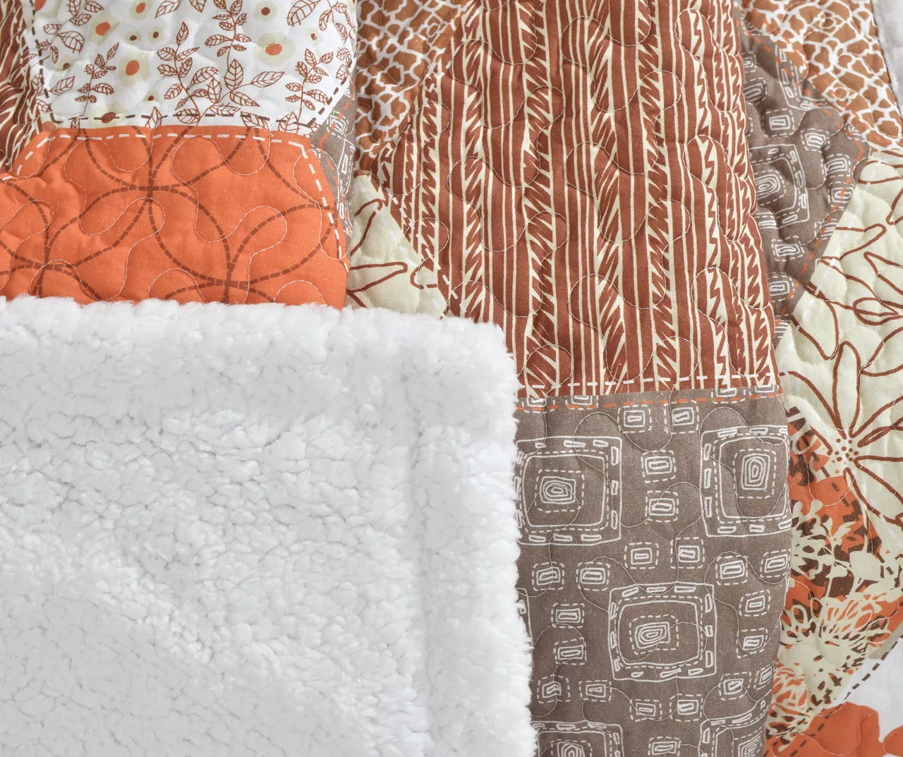 Geometric and floral prints define each hexagonal section of this throw for colorful modern style in your living space. Soft sherpa fabric lines the edges and reverse side for cozy comfort on cool days and nights.