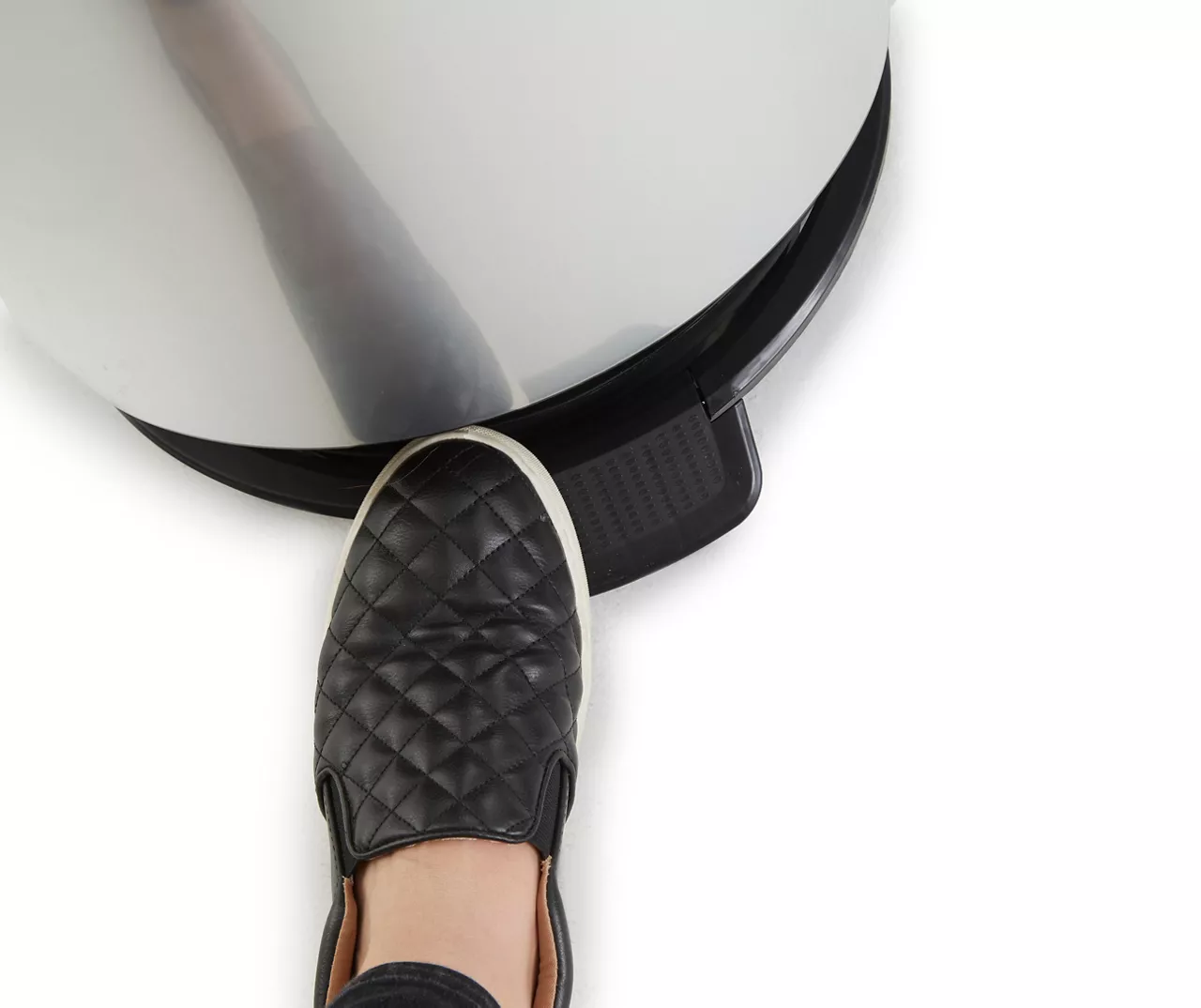 Keep your household waste out of sight with the Tondo 12.5 gallon step on waste can. It features the look of stainless steel in a durable and easy to clean material. The finish will not rust or dent and is fingerprint resistant. The step on pedal is designed to last and you never have to use your hands. The lid is designed to open with ease, but close slowly and quietly.