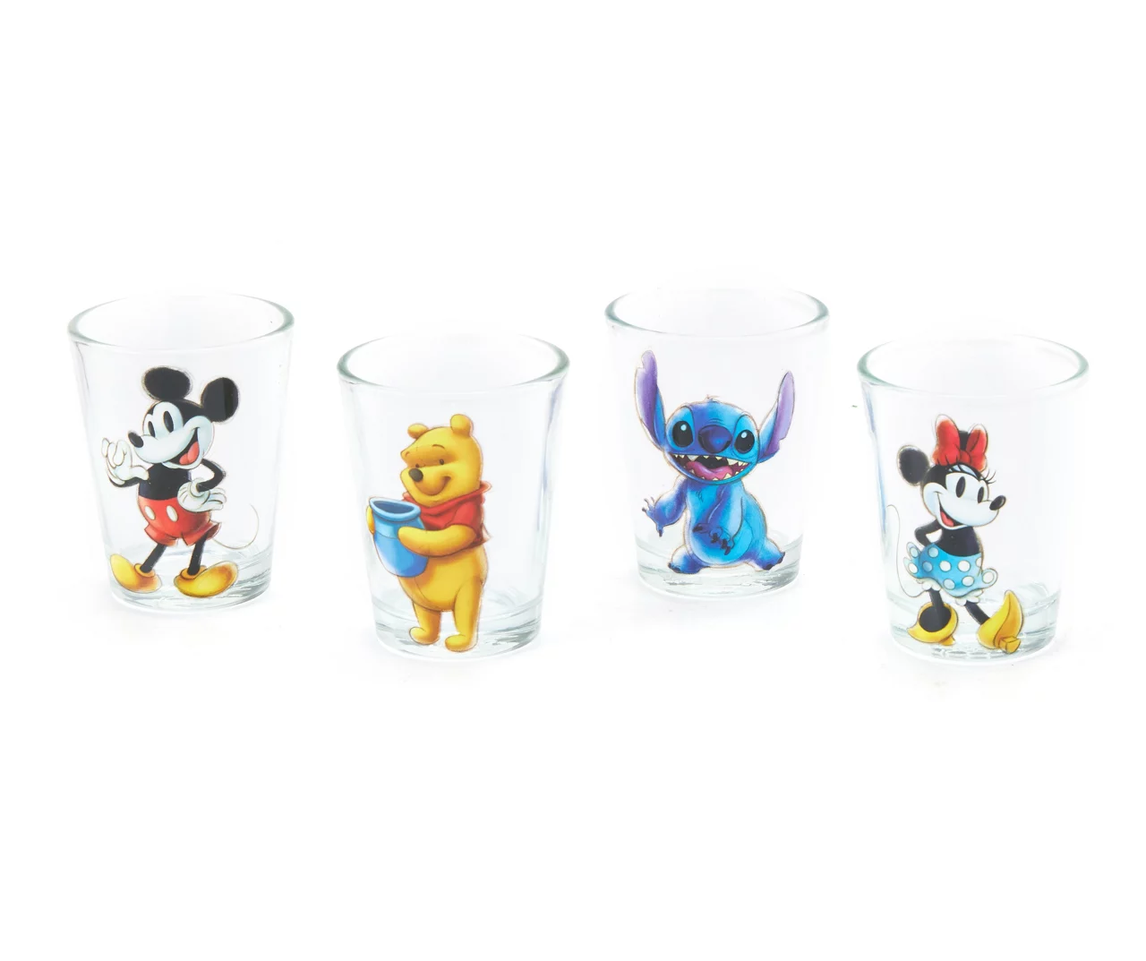 - Each glass features Mickey Mouse, Minnie Mouse, Winnie-the-Pooh and Stitch
