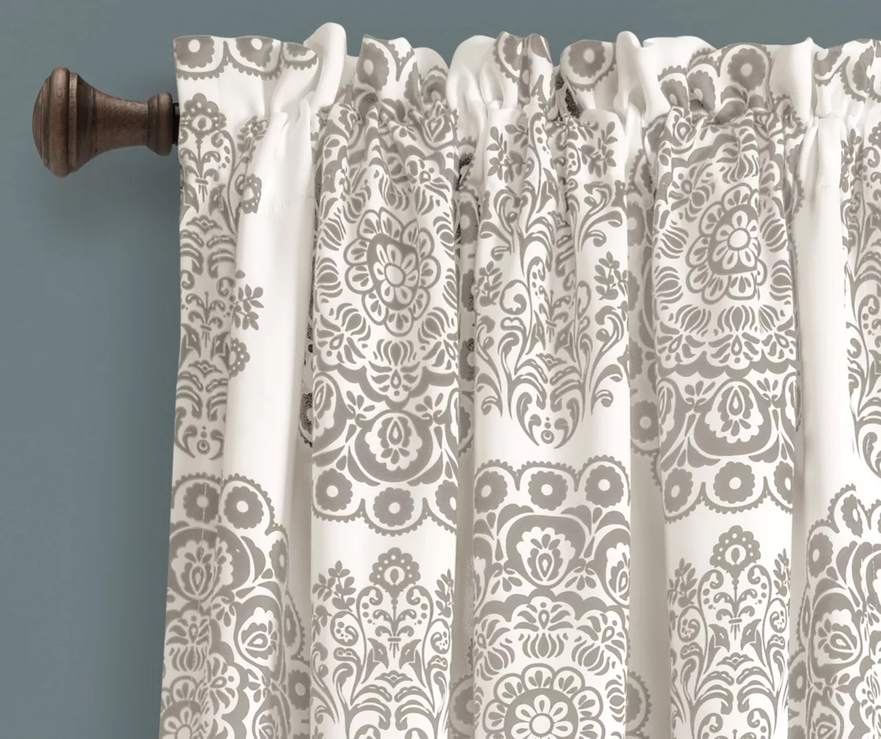 - An intricate all-over medallion print presents a beautiful contrast against the solid white background