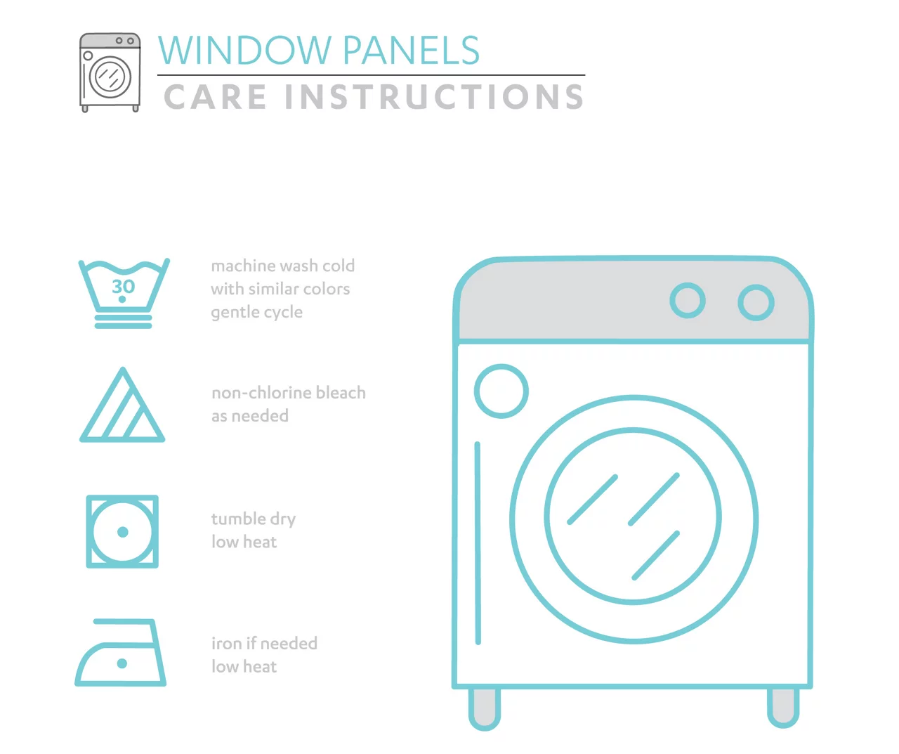 - Machine wash cold, gentle cycle. Use only non-chlorine bleach when needed. Tumble dry low. Light iron if needed