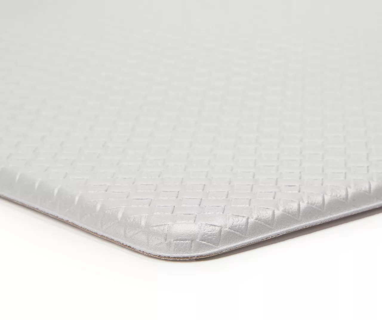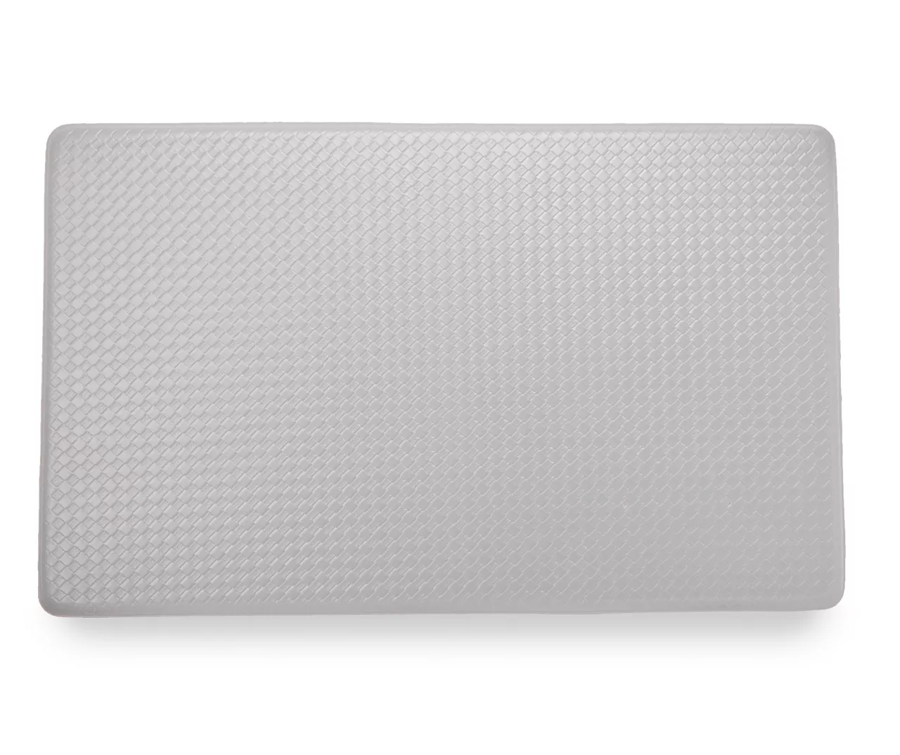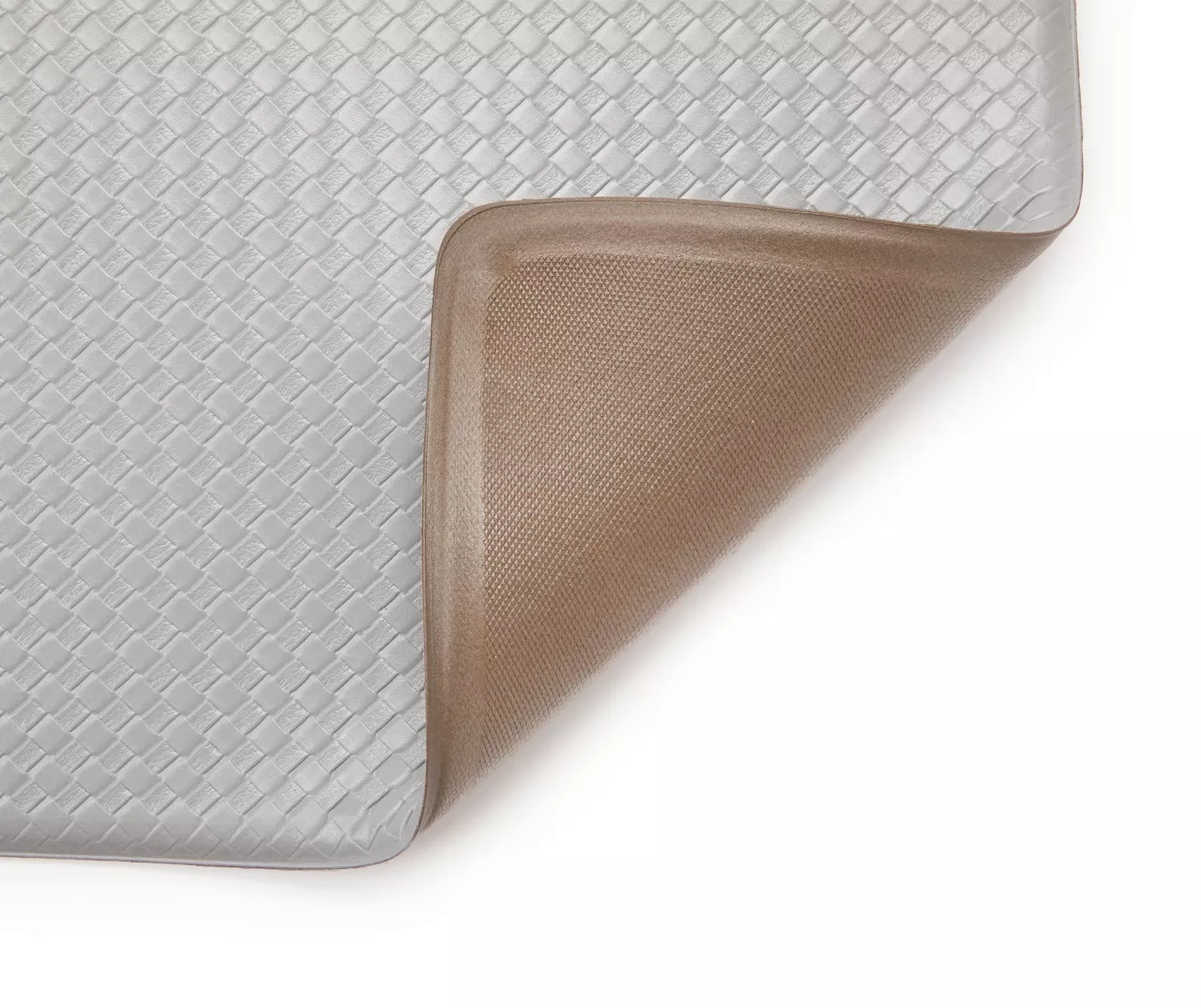 Whether you’re prepping a meal or repotting some plants, this protective PVC mat offers a spot of comfort to your stance. It’s easy to clean and features a woven texture in a neutral gray hue for modern flair that fits easily into many spaces.