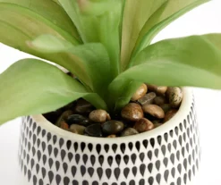 Artificial Succulent In Black Teardrop Pattern Ceramic Planter