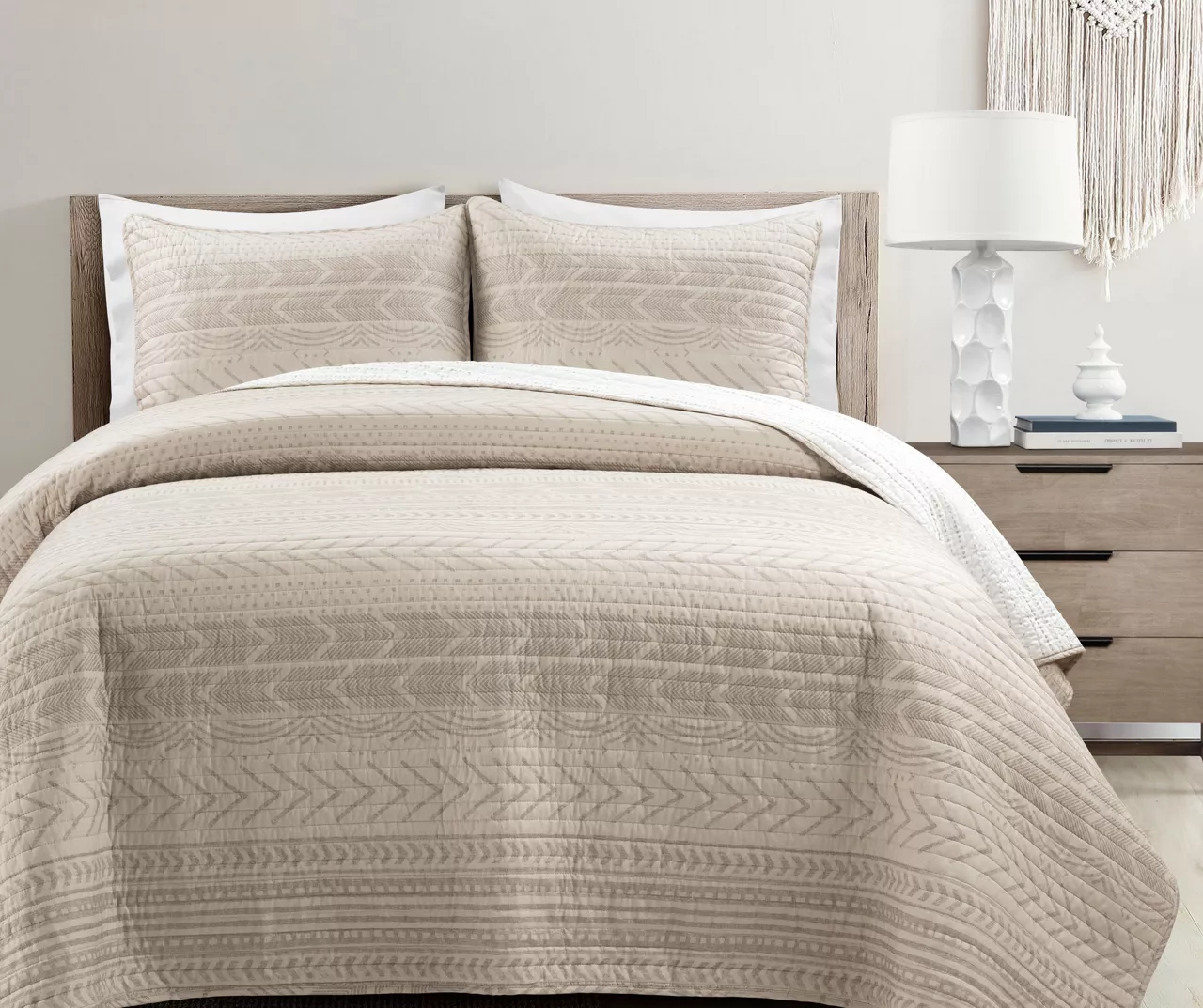 Style your sleep space with the free-spirited vibes and Scandanavian inspiration of this cozy quilt set from Lush Decor featuring rows of geometric designs in beige and wheat hues. Matching shams complete the look for a quick and simple bedroom makeover.