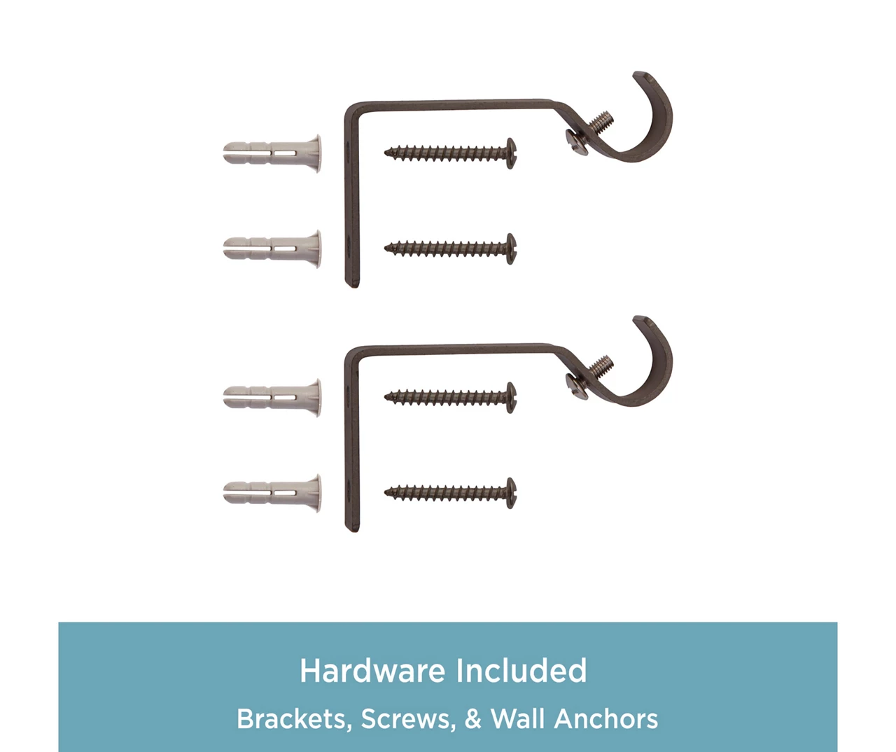 - Includes 1 telescoping curtain rod with finials, 2 brackets, screws, drywall anchors and installation instructions
