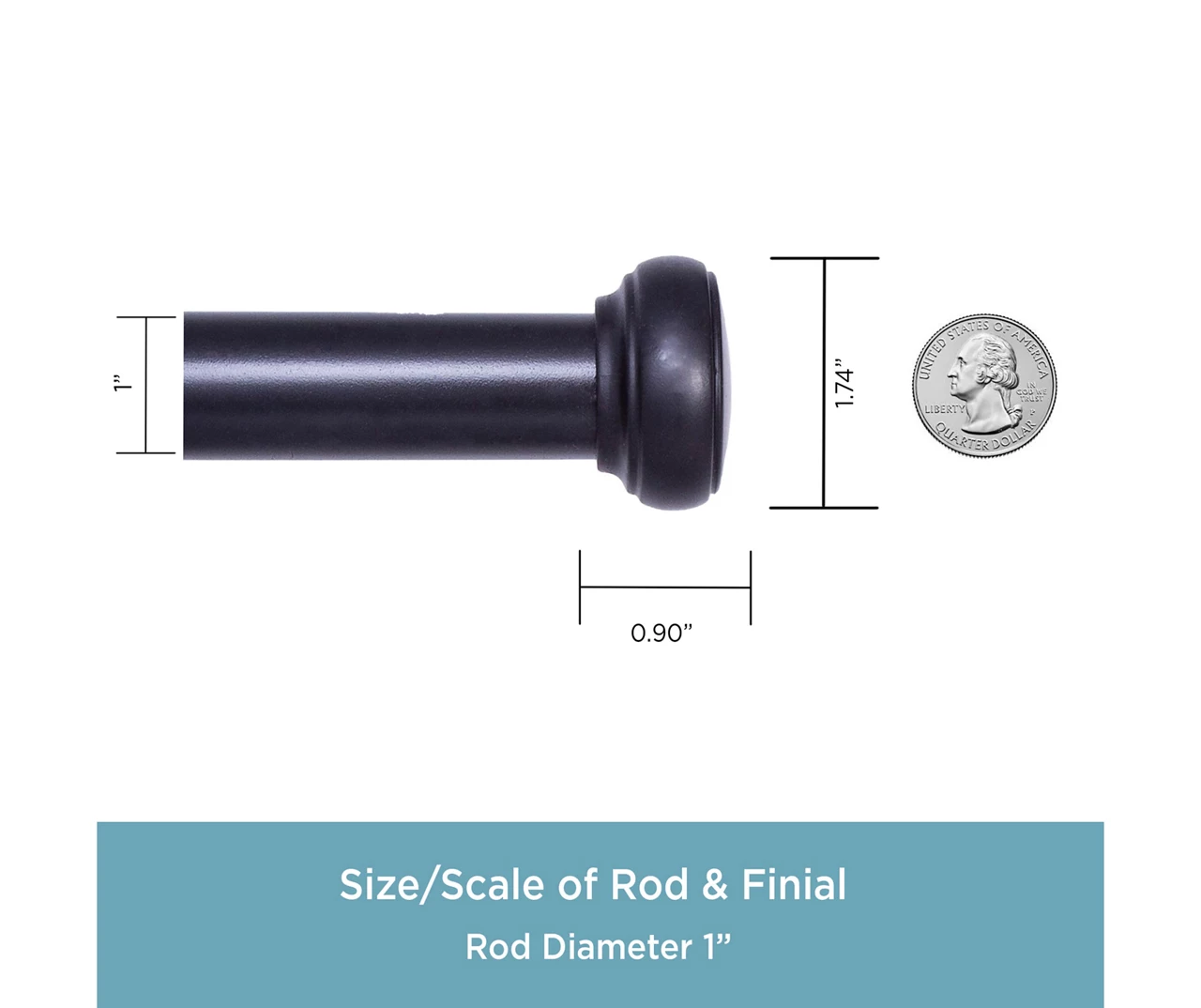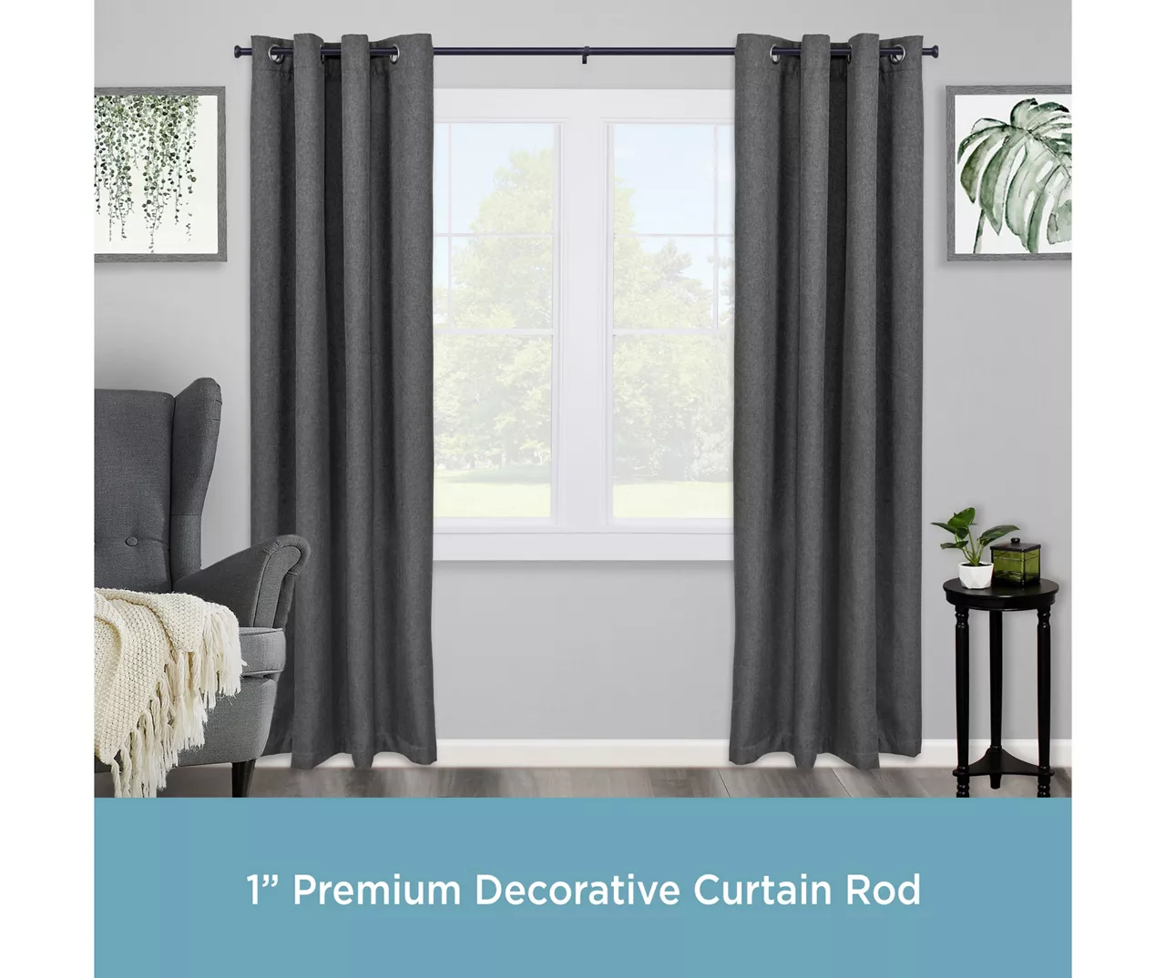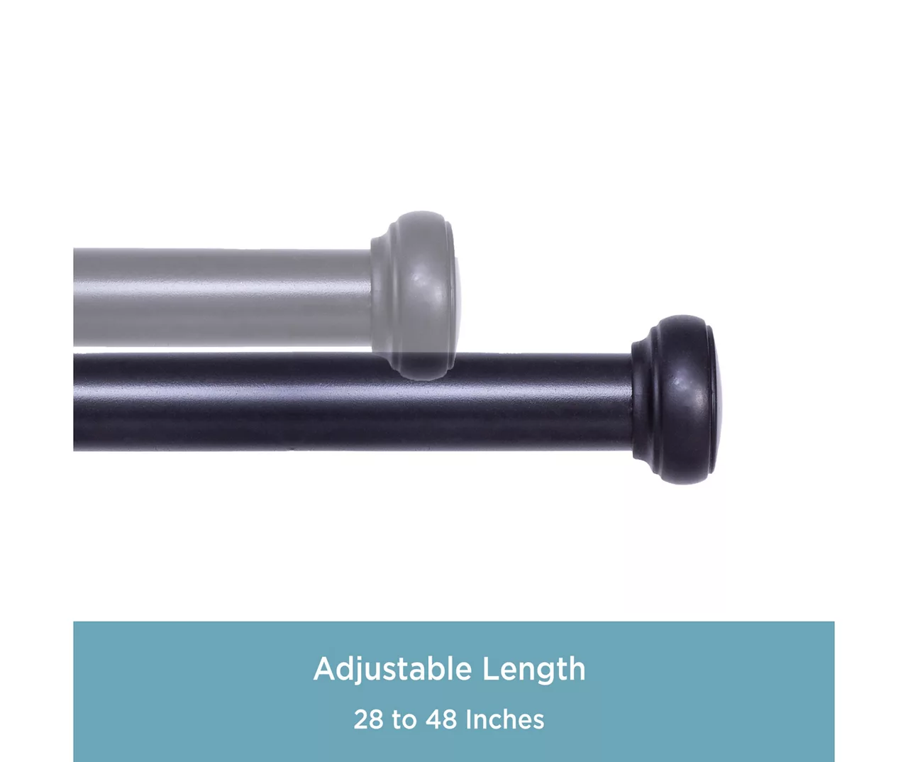 - 1″ diameter curtain rod adjusts from 28-48″ and projects 4.4″ from the wall