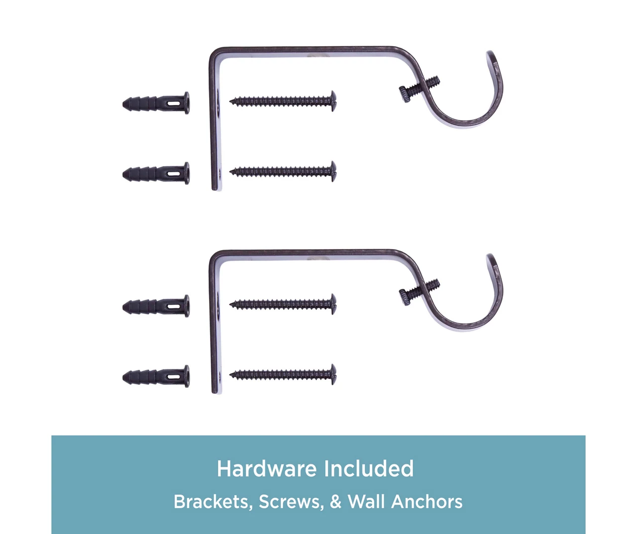 - Includes 1 telescoping curtain rod with finials, 2 brackets, screws, drywall anchors and installation instructions