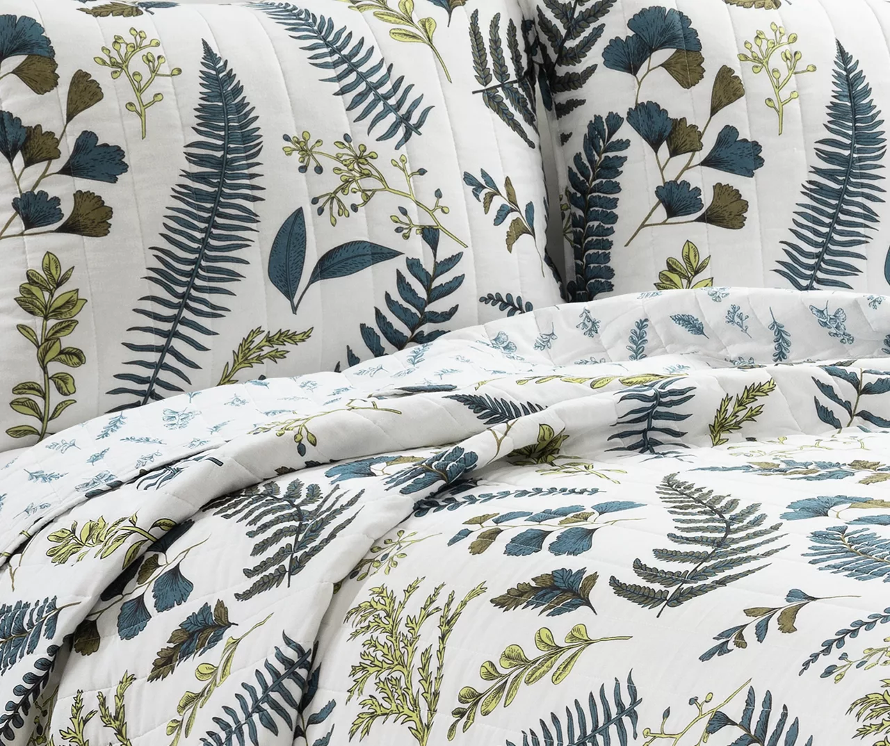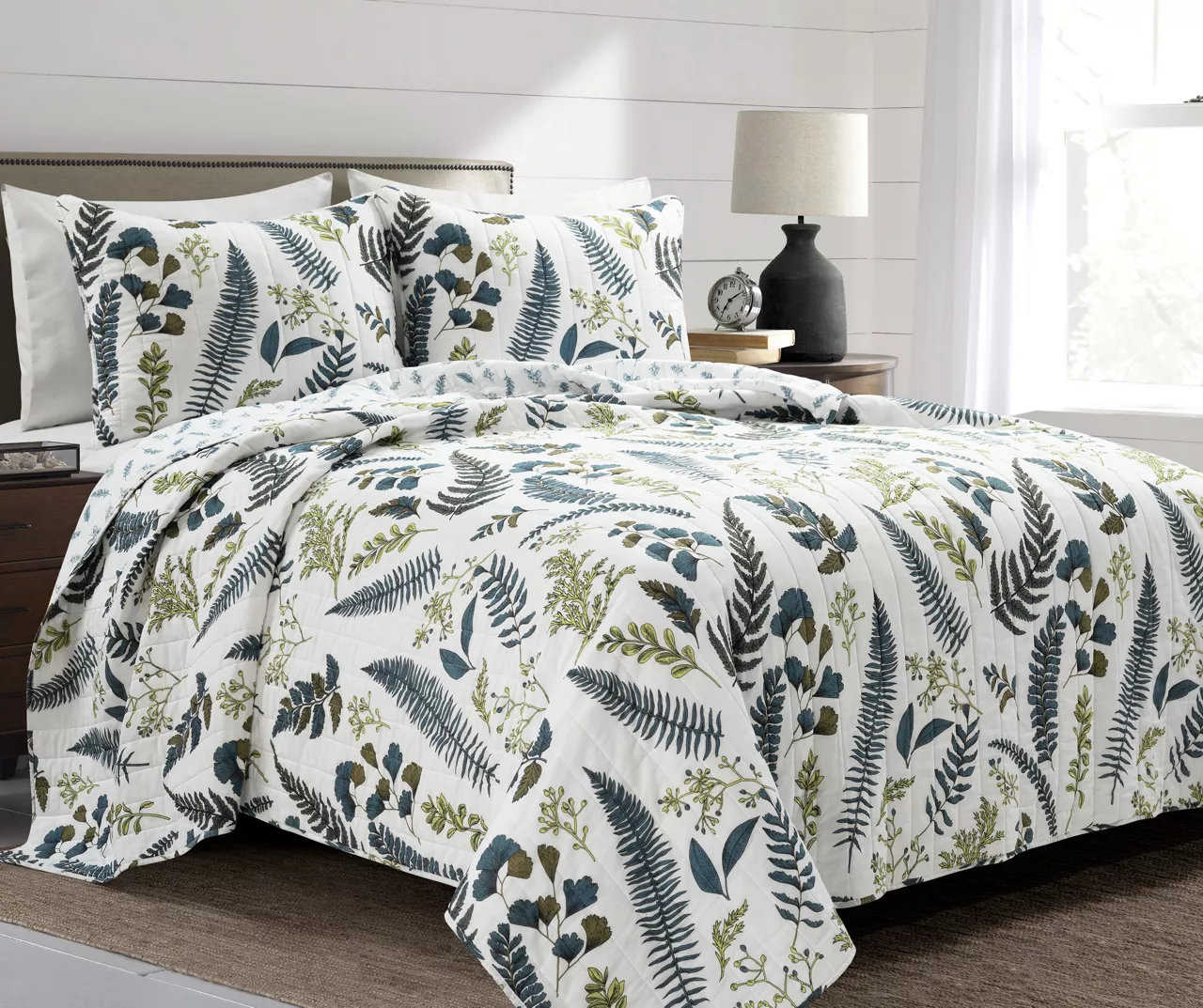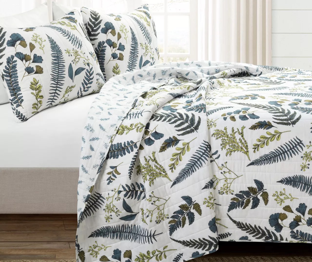 Lush Decor Devonia White & Green Botanical Reversible Cotton Quilt Set