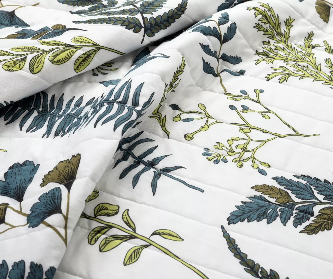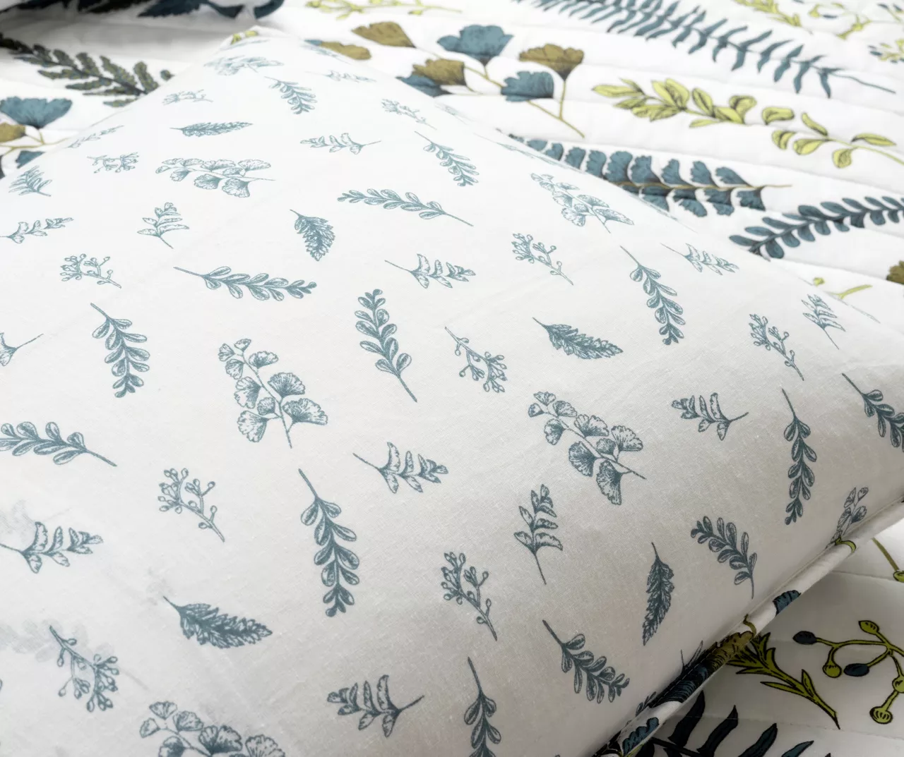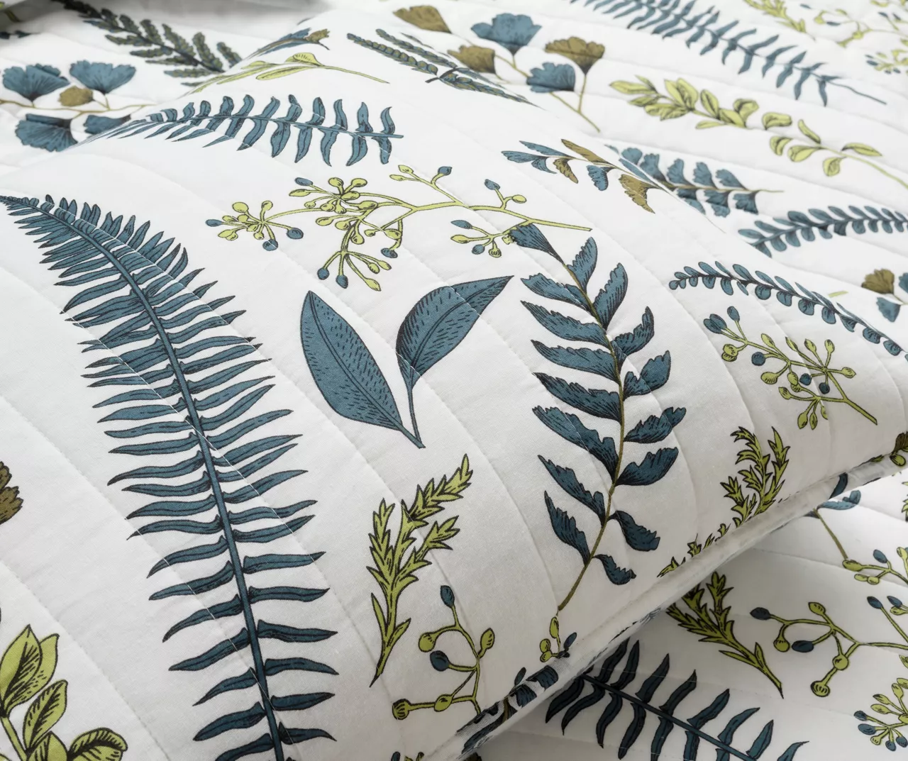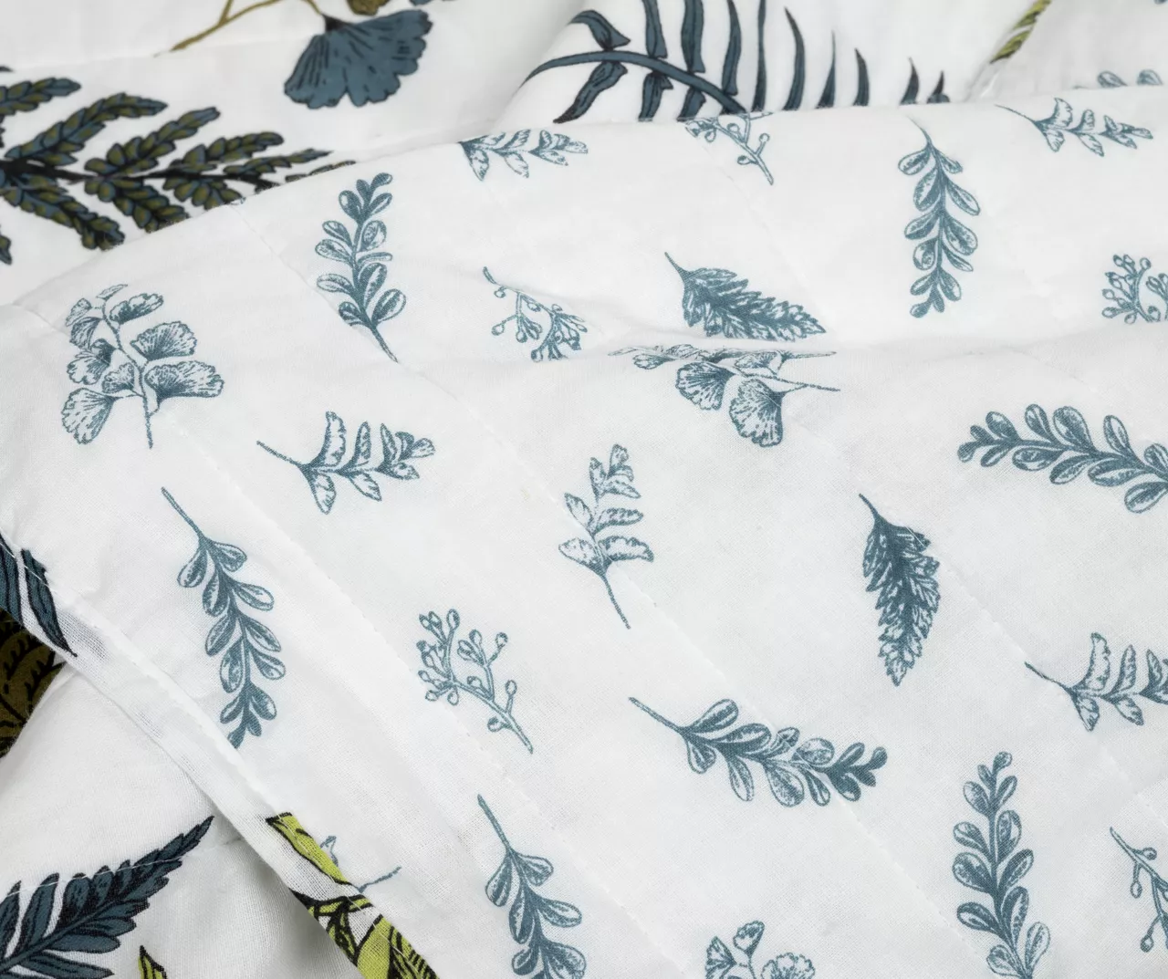 Lush Decor Devonia White & Green Botanical Reversible Cotton Quilt Set