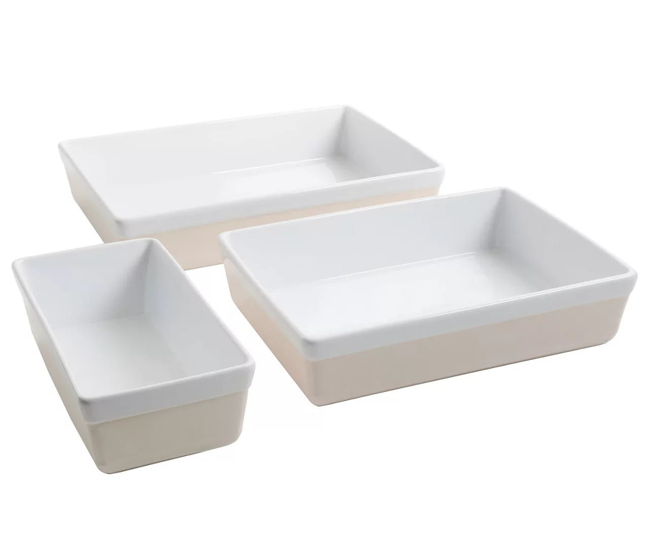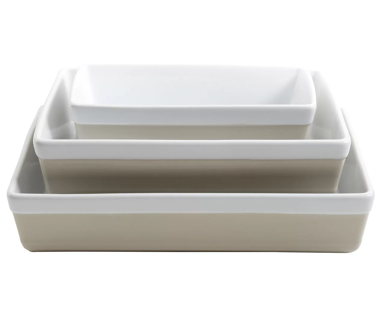Versatile in the kitchen and beautiful on the table, the Martha Stewart 3-piece Stoneware Baker Set is a practical addition to any home baker’s collection. Made from durable stoneware craftsmanship, each baking dish bakes and browns evenly to achieve golden-brown crusts and soft, flavorful crumbs. The two-toned exterior with glazed interior creates a stylish statement when serving from oven to table. It also allows smooth food release to easily slice through, serve and scrape the last few bites of any dish. When not in use, stack all three pieces to save space in your cabinet for clutter-free storage.