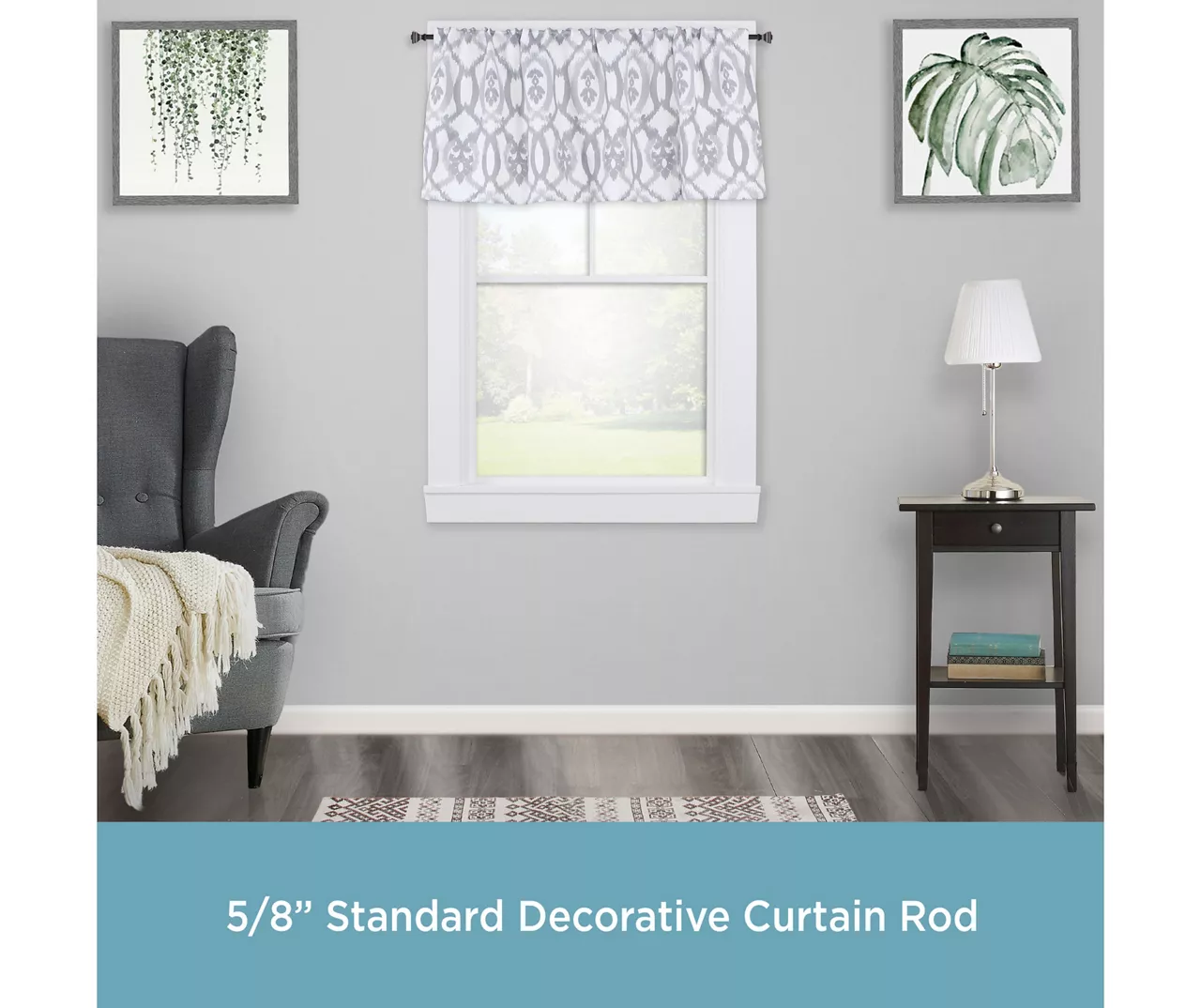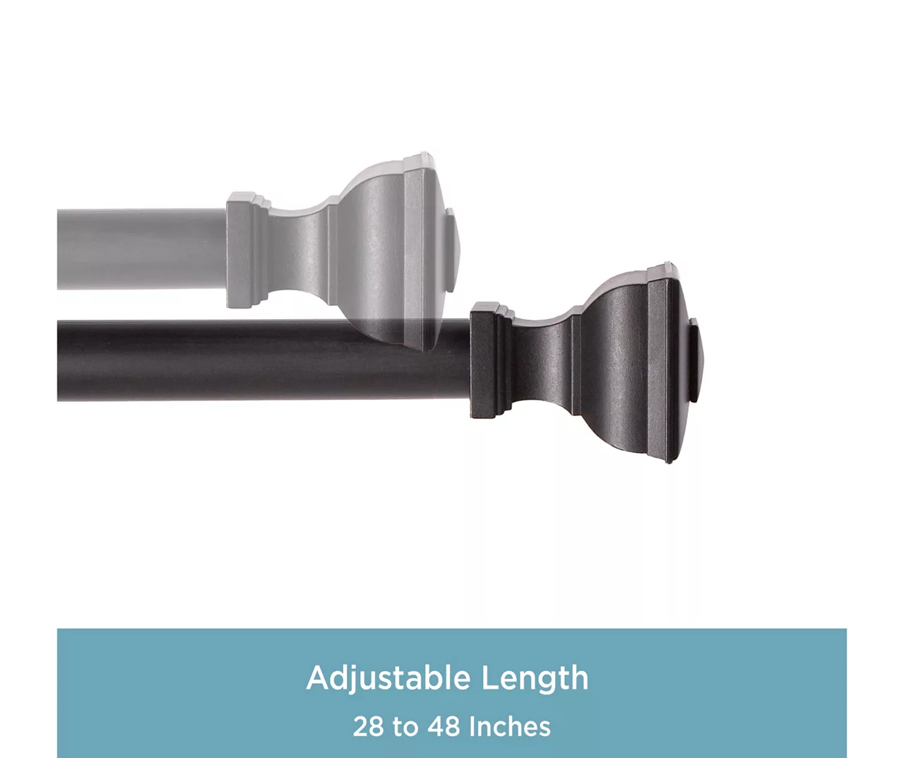 - 5/8″ diameter curtain rod adjusts from 28-48″ and projects 3.2″ from the wall