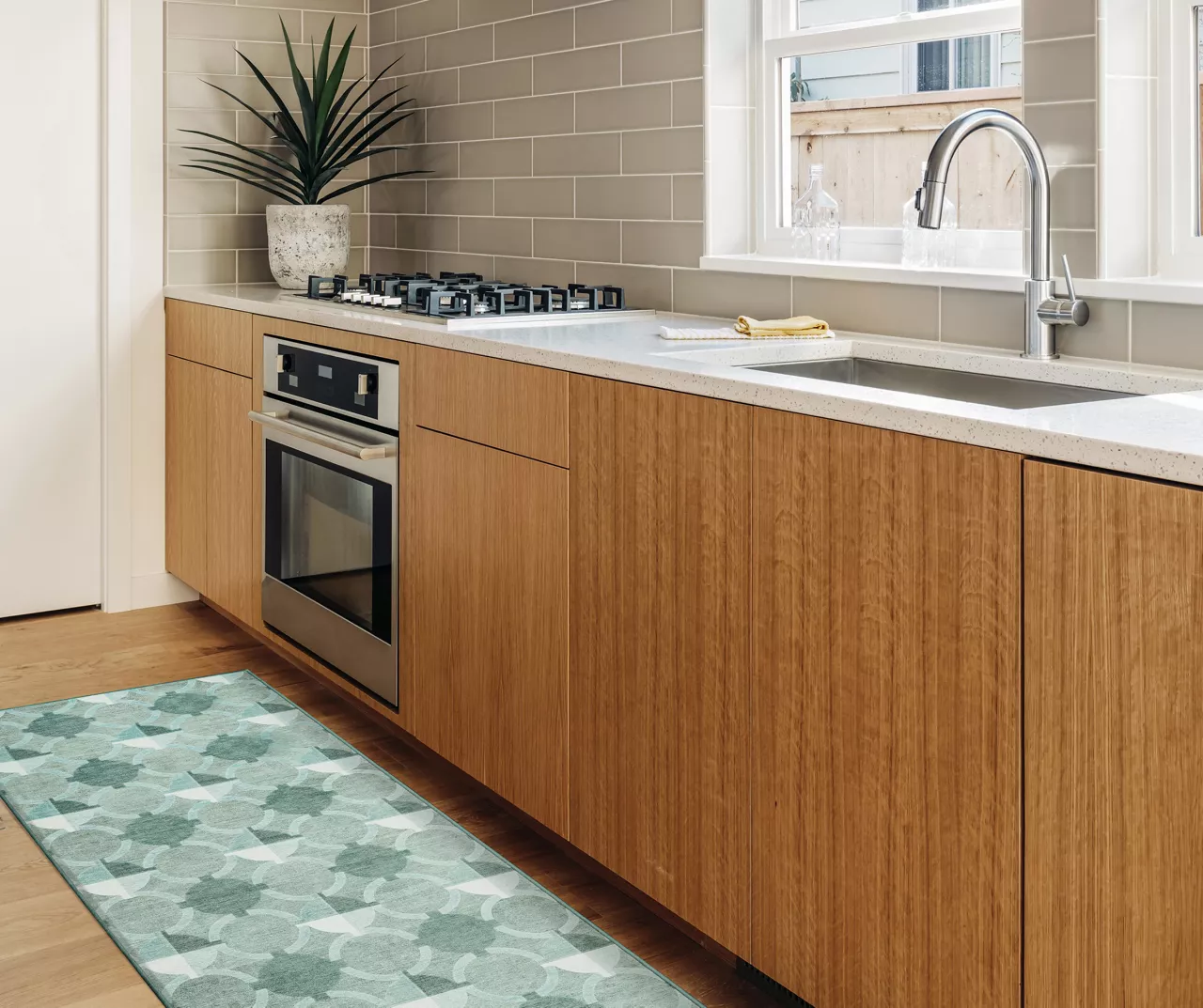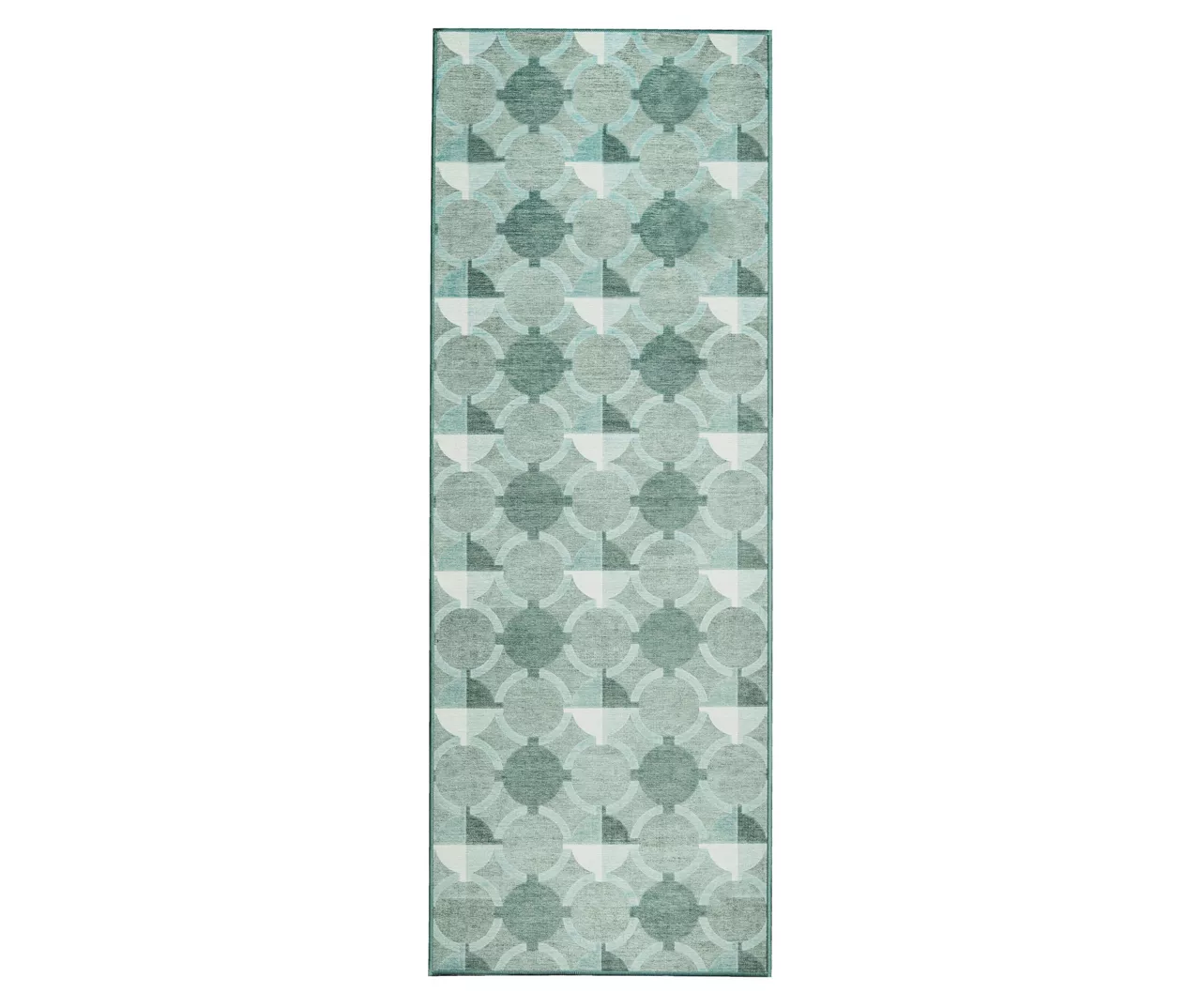 Inspired by mid-century modern aesthetics, this lovely area rug adorns your floors with a simple circle pattern in soft shades of green. My Magic Carpet is an eco-friendly, machine-washable, non-slip rug that is lightweight and easily fits into most washing machines. It’s durably designed to hold up through all of life’s wear and tear, and includes a non-slip patent-pending backing with a waterproof inner liner that stops spills and pet accidents from seeping through to the floor.