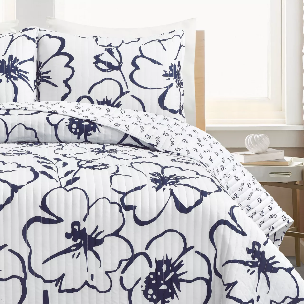 An elegant floral print in white and navy hues brings a touch of garden elegance and modern style to your sleep space, while the cozy polyester construction keeps you warm and comfy through the night.