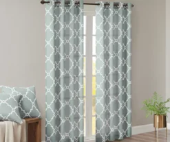 Sereno Fretwork Seafoam Light-Filtering Grommet Curtain Panel, (84″)