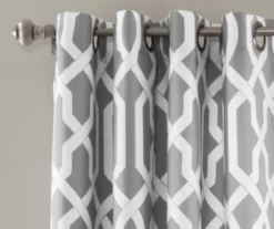 Edward Trellis Gray Room-Darkening Grommet Curtain Panel Pair, (108″)