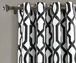 Edward Trellis Black Room-Darkening Grommet Curtain Panel Pair, (84″)