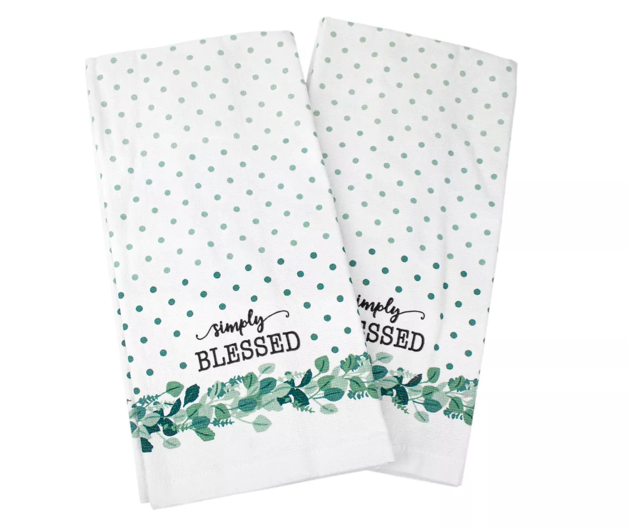 With a leafy accent below a “simply blessed” message and a polka dot pattern in lovely green and white hues, this towel set from Cuisinart complements any kitchen space with heartwarming charm. The towels are crafted from soft and absorbent cotton to quickly dry off hands and dishes alike with ease.
