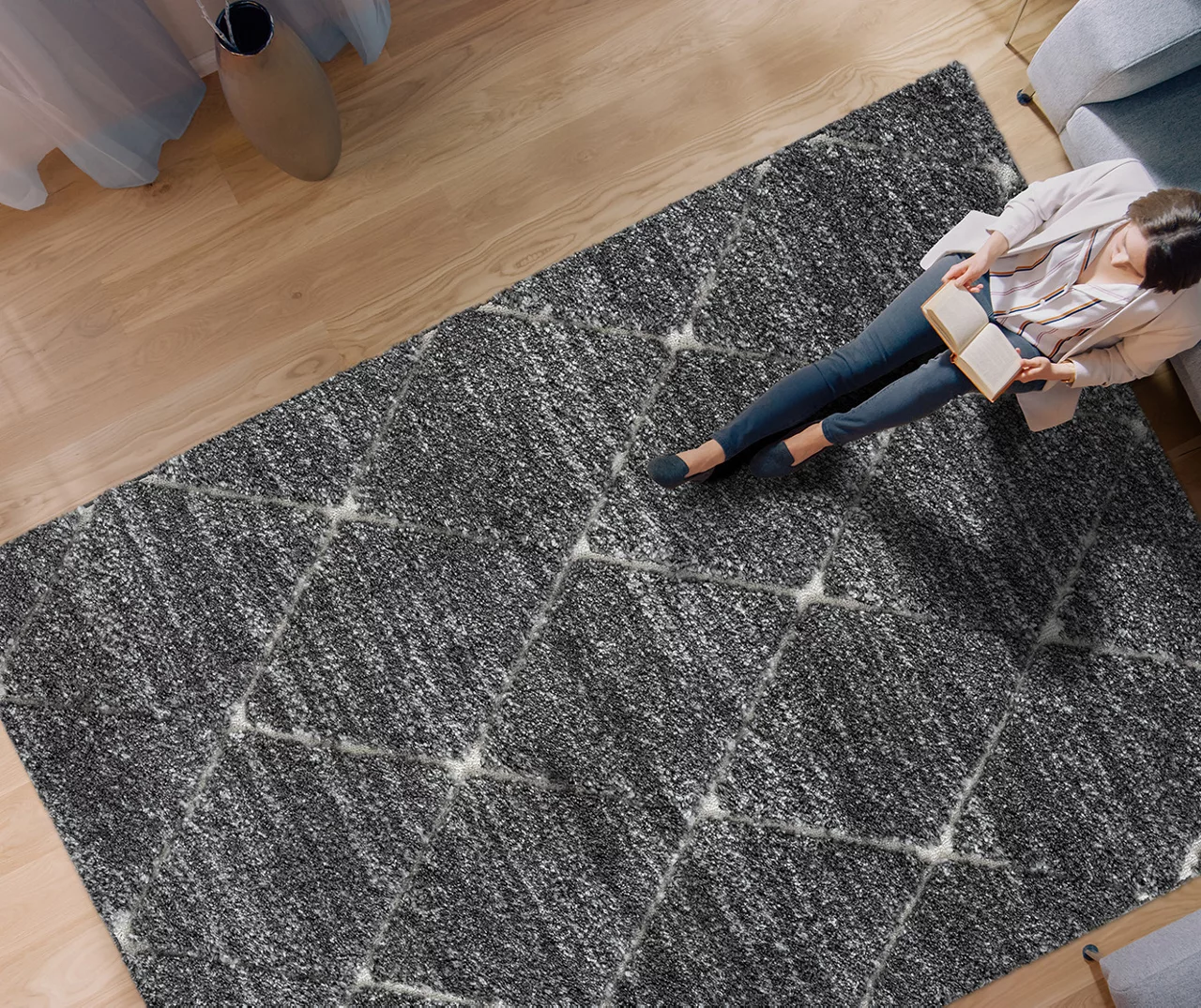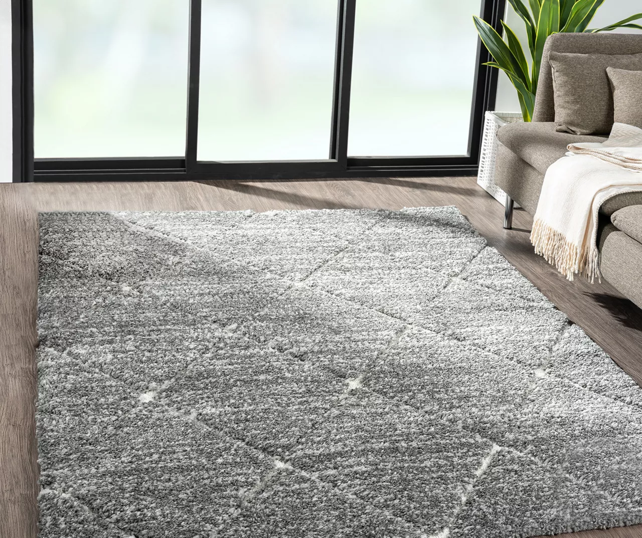 Bring a soft and elegant touch to your home decor with the Sophie area rug boasting a supersoft high pile with a cream diamond trellis pattern for a modern and stylish update. Tassel detailing adds rich texture and an artisan touch, while a sprayed transparent latex reverse helps prevent the rug from sliding making it well-suited for high-traffic areas. Easy to clean with a brushless vacuum or by spot cleaning, while also resistant to staining and fading, this shag area rug is the perfect update for a cozy yet fresh update.