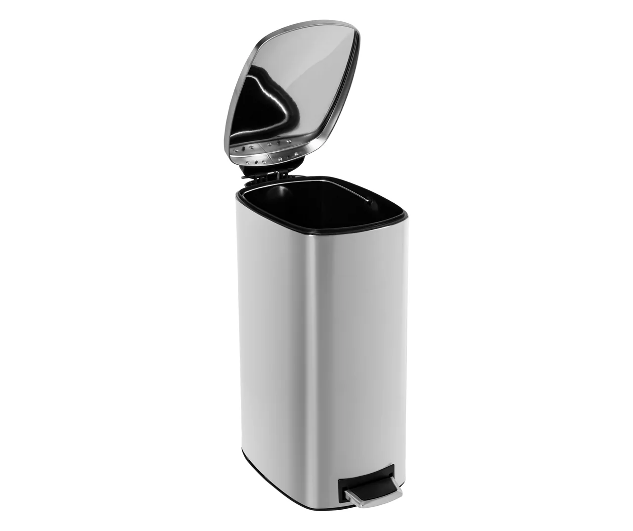 Designed to close softly and quietly, this sleek steel trash can from Honey-Can-Do makes it easy to keep your mess contained and out of sight. A step pedal lets you open the lid without using your hands, and the removable inner pail makes clean-up a breeze.