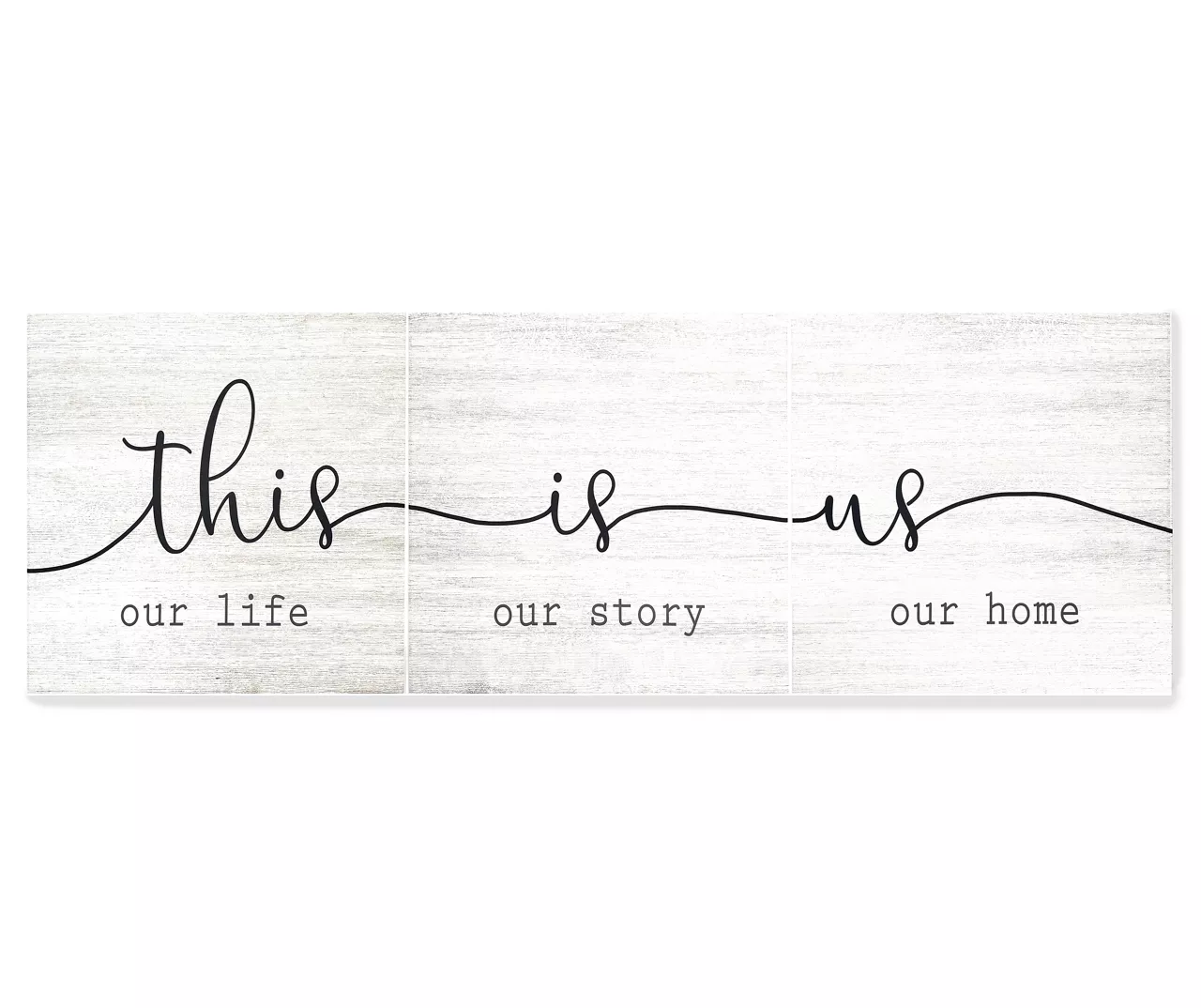 Add inspiring sentiment and beautiful design to your wall with this set of three canvases that state “this is us.” Together they make a stunning gallery wall in the living room, dining room or bedroom.