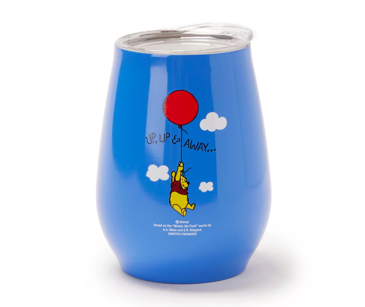 “Up, Up & Away” Blue Pooh Stainless Steel Travel Stemless Wine Mug, 10 Oz.
