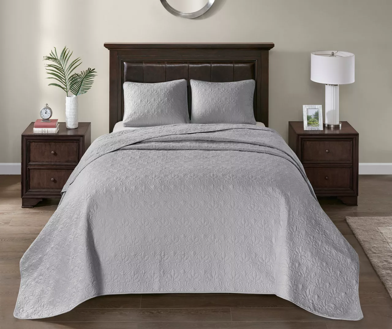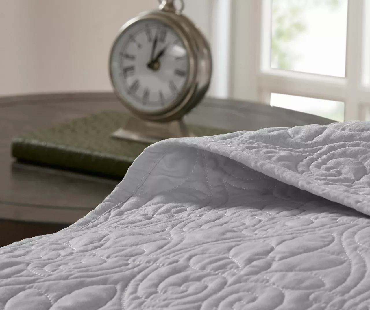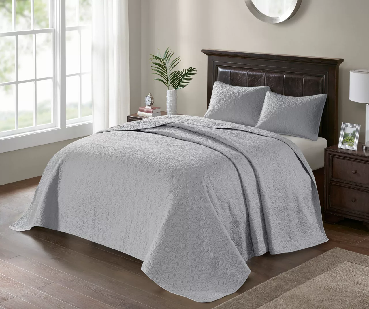 The Vancouver bedspread set offers a charming cottage-inspired update to your bedroom. The reversible bedspread and shams flaunt a classic stitch pattern that creates a rich depth and texture on the face of the bedding set. Prewashed cotton filling provides added comfort and durability, while the oversized dimensions allow the bedspread to drape better. The bedspread also has an antimicrobial treatment that helps provide built-in freshness protection to keep fabric lasting longer.