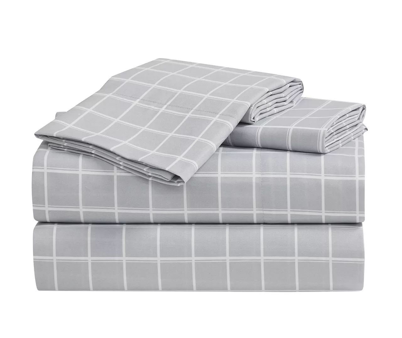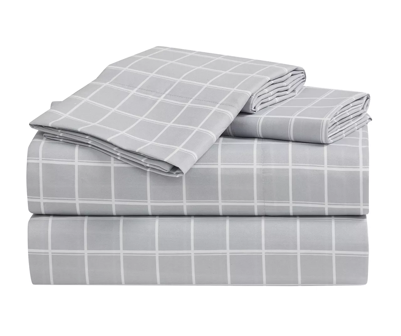 Freshen the bedroom with the simple grid print of this cozy sheet set crafted from soft microfiber fabric that keeps you comfy through the night.